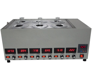HSJ系列型水浴磁力搅拌器(恒温水浴/油浴加热) 一、简介: 本仪器是各大专院校、环保、科研、卫生、防疫、石油、冶金、化工、医疗等单位的化验室、实验室必备的理想的工具,大大提高了实验人员的工作效率。 二、特点: 本机采用水浴或油浴加热法,搅拌容器置于水浴/油浴锅内,加热速度快,溶液温度均匀、稳定、大大提高了搅拌效率。本机采用永磁直流电机,空载可连续运转1万小时以上,噪音小,转速平稳,连续工作能力强,耐高温;强磁力的优质磁钢,保证了足够的搅拌力矩。本机采用冷轧板碰焊成型,外表面经高温喷塑处理,增强了防腐性能,本仪器性能好,无噪声、无振动、搅拌效果显著。 三、性能: 1、使用电源:220V50HZ 2、电机转速:起动-2000转/分(无级可调) 可按照用户需求:定做1-8个工作位;每个工位可定做单独控温、单独调速 3、电机功率:20W/每工作位 4、加热功率:300W-2000W 5、数显控温:室温~100℃/200℃。 四、使用方法: 在使用本仪器前,首先请检查随机配件是否齐全,把所需搅拌的烧杯放在集热锅内,把搅拌子放在烧杯中,然后插上仪器的电源插头;接通电源打开电源开关,指示灯亮即开始工作。需作加热(恒温)搅拌时,只要在温控仪上选择所需的温度即可,调速有慢到快(不允许快档起动,以免搅拌子跳动),不工作时应切断电源。为确保安全,使用时请接上地线,仪器应保持清洁干燥,严禁溶液进入机内,以免损坏机件。 五、注意事项: 1、搅拌时发现搅拌子跳动或不搅拌时,请切断电源检查一下烧杯是否平,位置是否正,同时请测一下,现2用的电压是否在220V±10V之间,否则将会出现以上情况。 3、加热时间一般不宜过长,间歇使用延长使用寿命。 4、中速运转可连续工作8小时,高速运转可连续工作4小时。 5、随整机配有夹具支柱一套,四氟搅拌子一只,电源线一根(插头)。为确保产品信誉,凡购买本厂产品6、从出厂日期起一年内由于机组本身质量问题引起的故障,均由我厂修理或换新。
