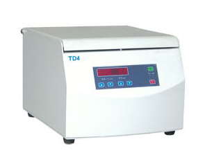 TD4型台式低速离心机 TD4 TABLE-TYPE LOW-SPEED CENTRIFUGE 一、产品特性 1无刷电机,免维护 Driven by brushless motor and free on maintenance. 2微机控制,触摸面板,数字直观显示,操作简单 Controlled by microcomputer with touch-ing panel and LED display, easy to operate 3钢制机身,不锈钢离心腔,耐腐蚀易清洁、安全、稳定 Steel body,stainless steel centrifugal chamber, corrosion resistant for safe operation and easy to clean 4可对转速、时间等参数进行设置,方便使用 Arbitrarily setting the parameter of speed and time. Easy to use. 5适用于生物化学实验室,医院临床检验等。 Suitable to hemistry Laboratory and Clinical Laboratory in Hospital 二、技术参数及转子参数TECHNICAL PARAMETER