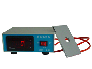 3、接能电源,合上电源开关,直接在智能温控仪上选择所需的温度即可,当所需温度高于实际温度时,指示灯亮,表明加热器已开始工作,指示灯亮表示加热停止,处于恒温状态,此时温度发生波动时,指示灯自动转换(不需要进行任何操作)使恒温板温度保持恒定。